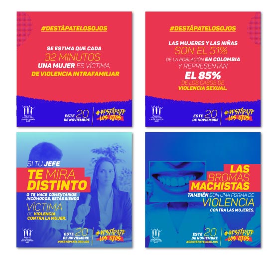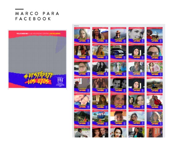 #DestápateLosOjos es una campaña que buscó empoderar a la audiencia con un movimiento viral de campaña. Durante la fase inicial le «abrimos los ojos» al público con piezas de comunicación que contenían mensajes de violencia de género naturalizadas y cifras alarmantes de los casos en Colombia y el mundo. En una segunda fase invitamos a los jóvenes a vincularse directamente desde sus redes haciendo la acción de destaparse los ojos frente a la problemática de la violencia de género, y a actualizar sus fotos de perfil con un marco de fotos que creamos exclusivamente para la campaña y estuvo disponible para todos los usuarios de Facebook.