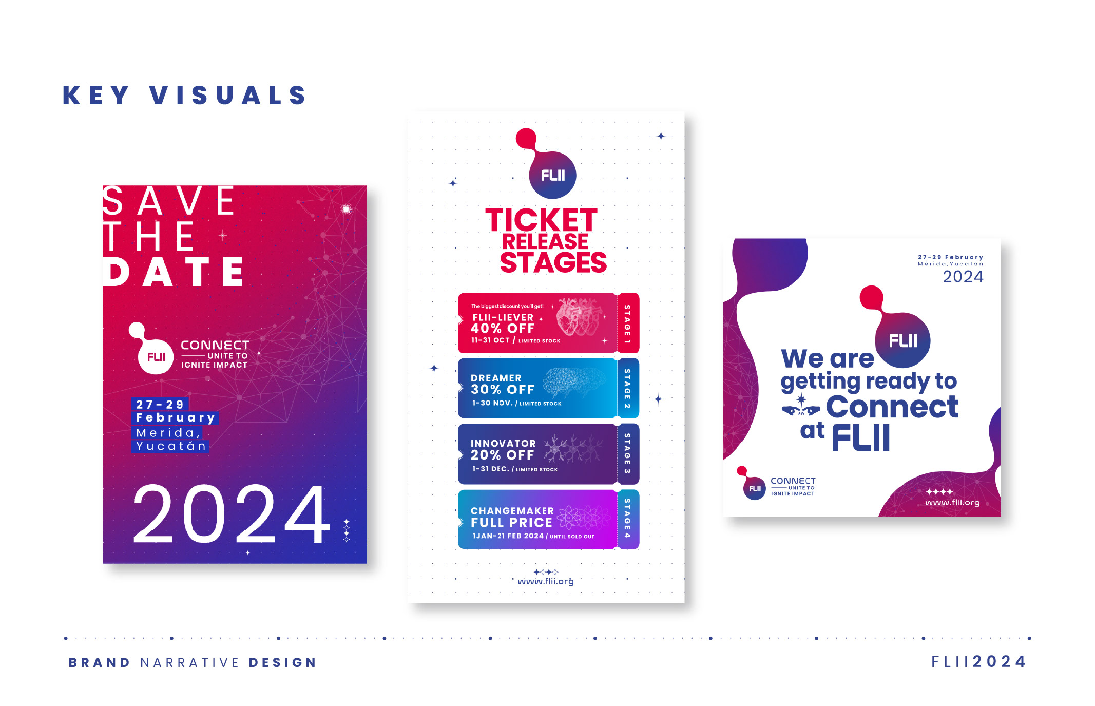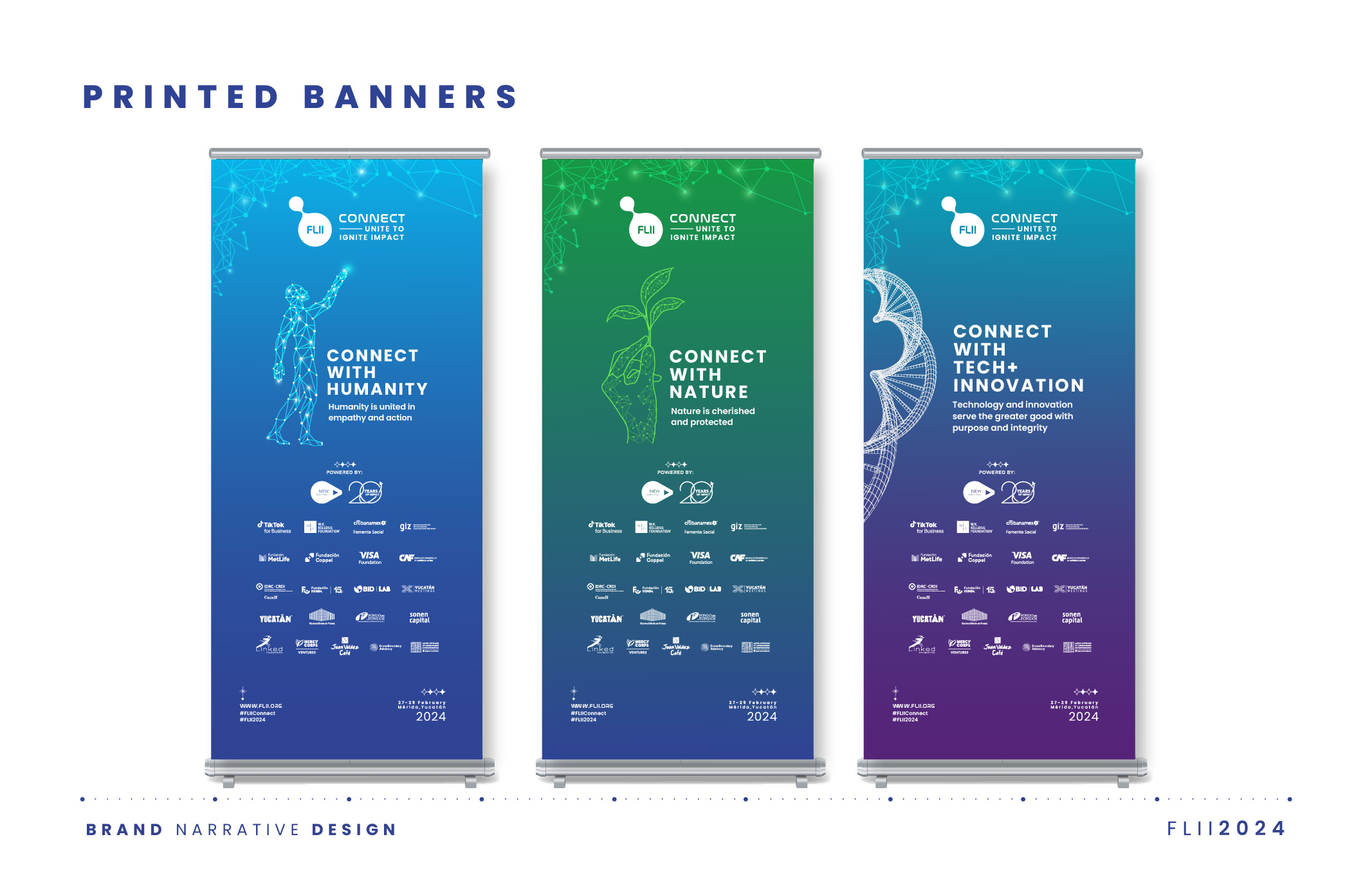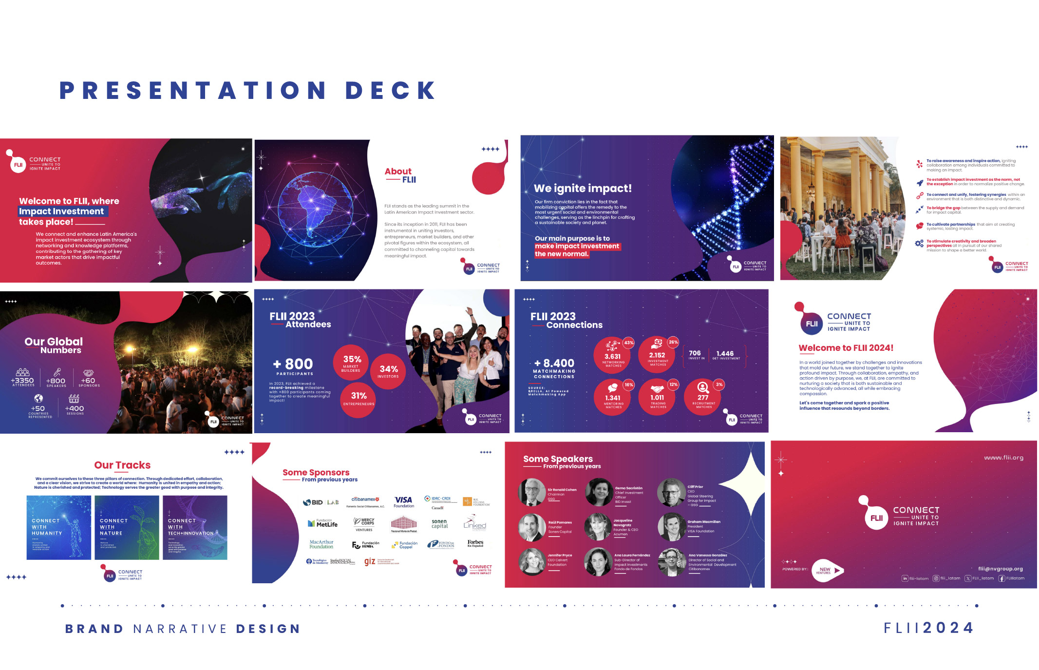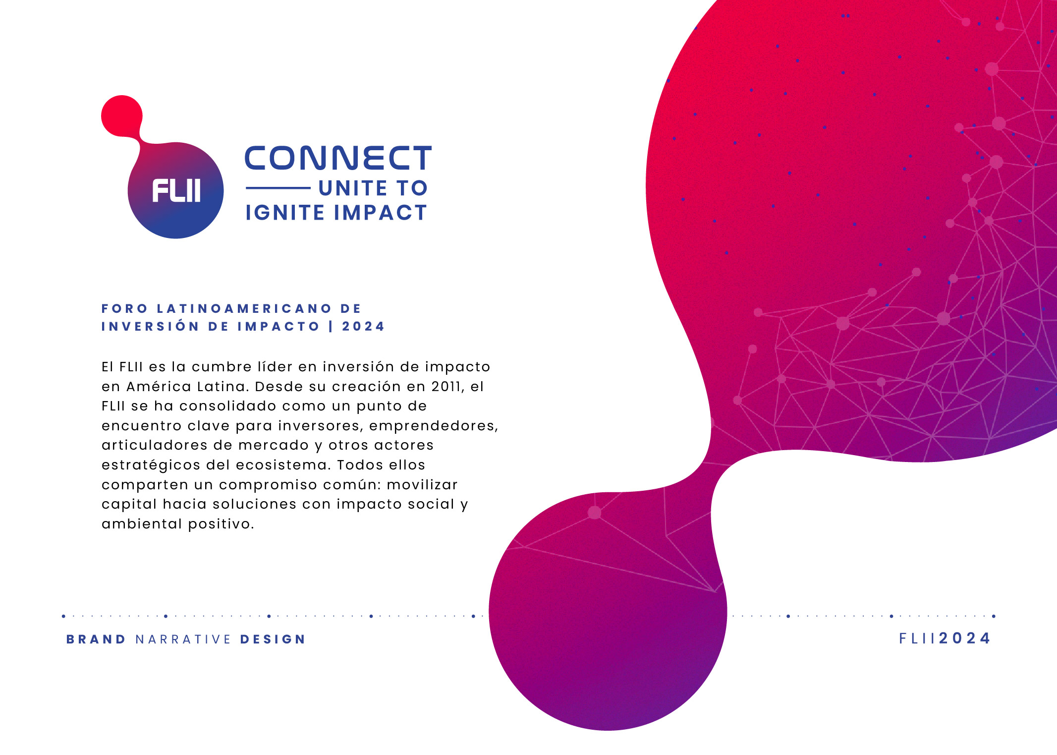Diseño de logo, look & feel y narrativa gráfica para la edición 2024 del Foro Latinoamericano de Inversión de Impacto (FLII), el evento líder del ecosistema de inversión de impacto en América Latina desde 2011. Cada año, el FLII renueva su identidad visual en torno a un concepto único; en esta edición, desarrollamos una propuesta integral que traduce el propósito del evento en una experiencia visual coherente, actual y memorable.