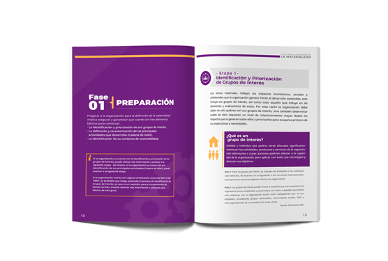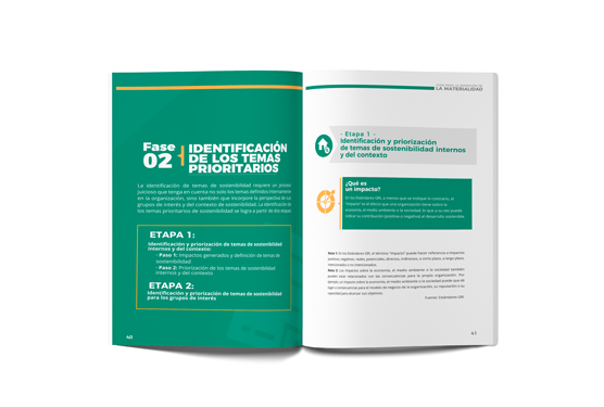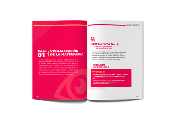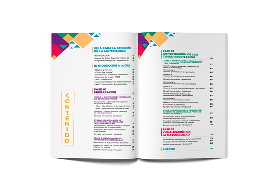 Diagramación y diseño editorial de libro guía con herramientas y procesos para que las organizaciones incrementen su capacidad de reporte de sostenibilidad del Global Reporting Initiative.