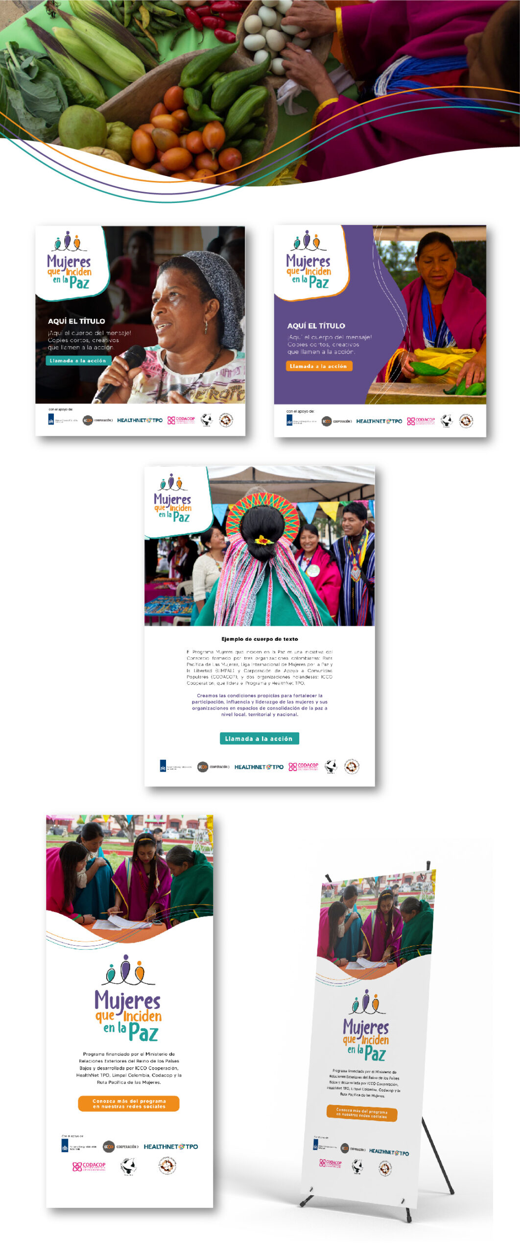 Diseño de branding y look and feel para proyecto Mujeres que inciden en la paz.