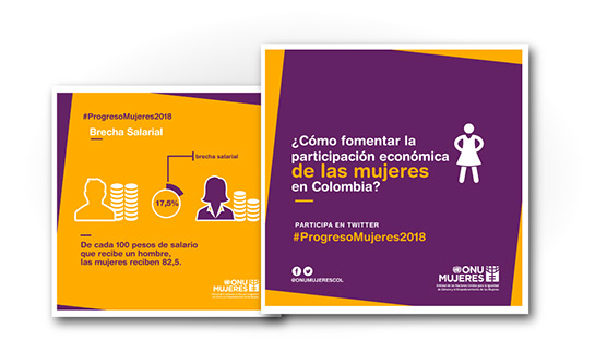 Creación de campaña digital para promover el lanzamiento del informe nacional El Progreso de las mujeres en Colombia 2018: Transformar la Economía para realizar los Derechos de ONU Mujeres Colombia.